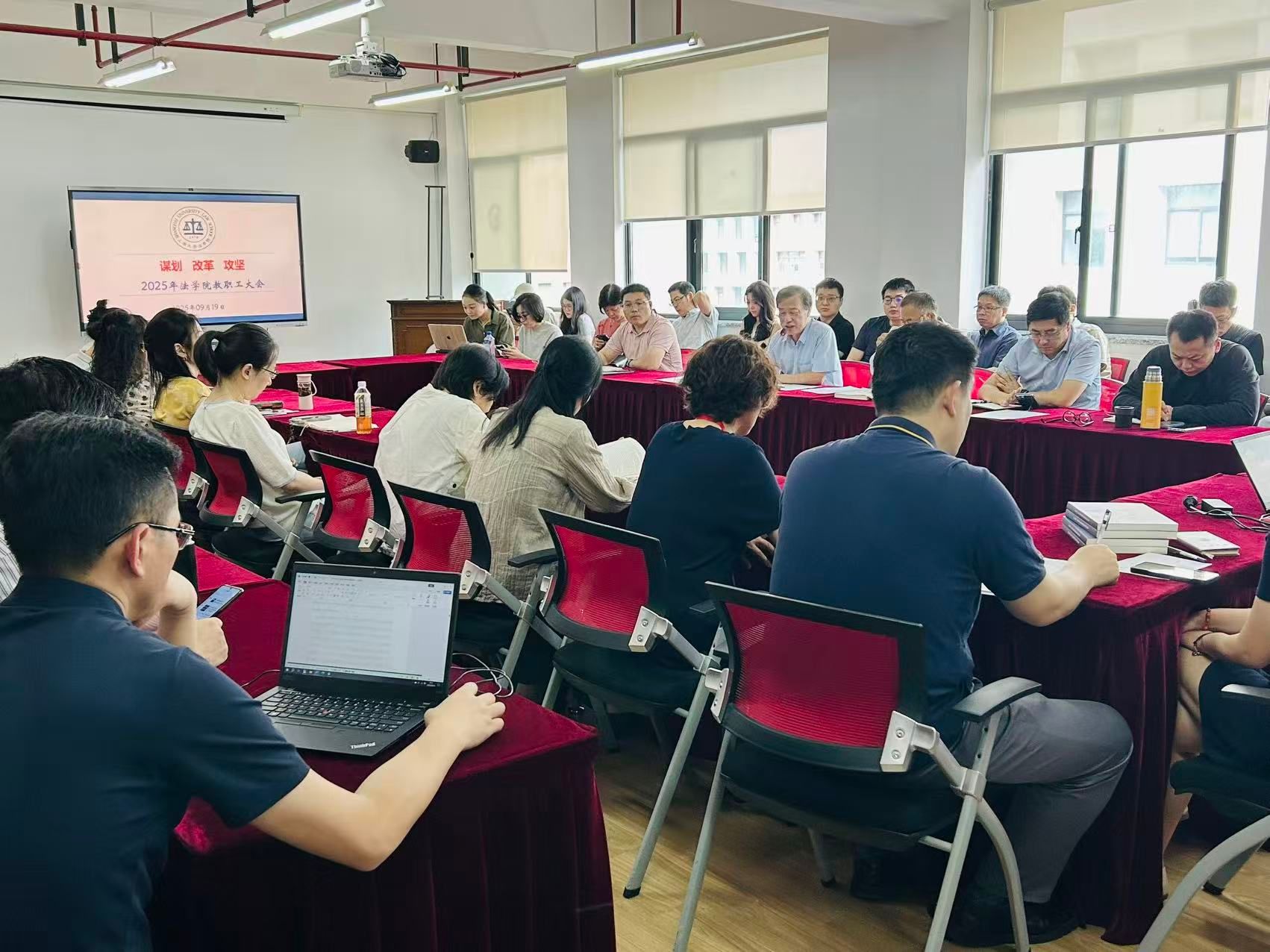 2025年9月19日上午,秋风送爽、学期伊始。在2025-2026学年的第一个工作日,tyc41183太阳成集团在东区法学楼504会议室召开2025年第四次全院教职工大会。学院领导班子成员、全体教职工悉数参会。会议由学院党委书记徐国明主持。